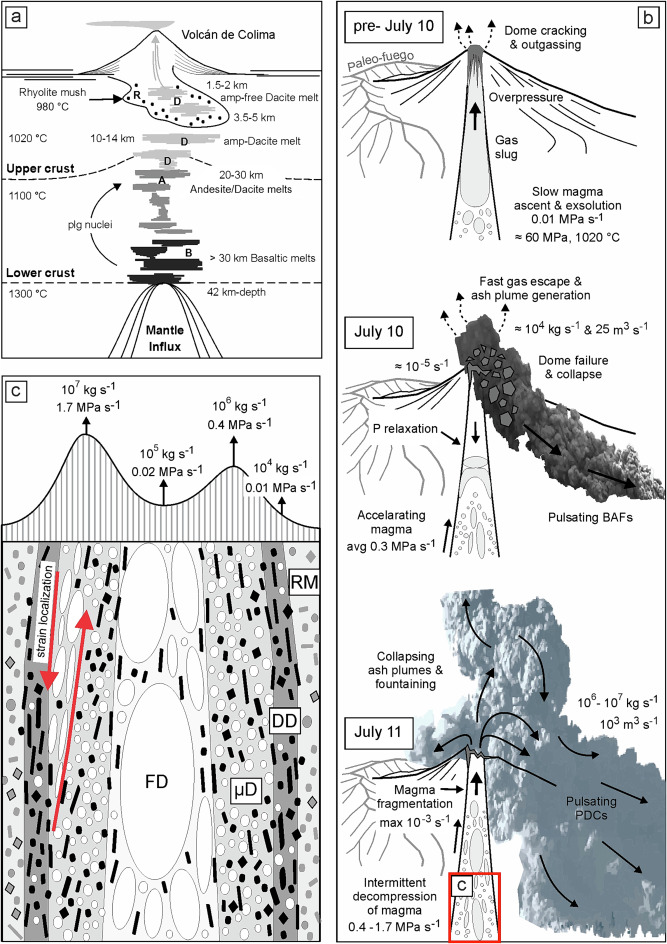 Andesite magma genesis, conduit dynamics and variable decompression from shallow reservoirs drive contrasting PDC events at Volcán de Colima, Mexico