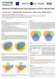 Sensitivity of Predictions for Close Encounters of NEAs with the Earth - Ivantsov, Anatoliy et al - Poster presented at 8th International Academy of Astronautics Planetary Defense Conference, Vienna, Austria on 2023-04-04 - POSTER-2025-0037